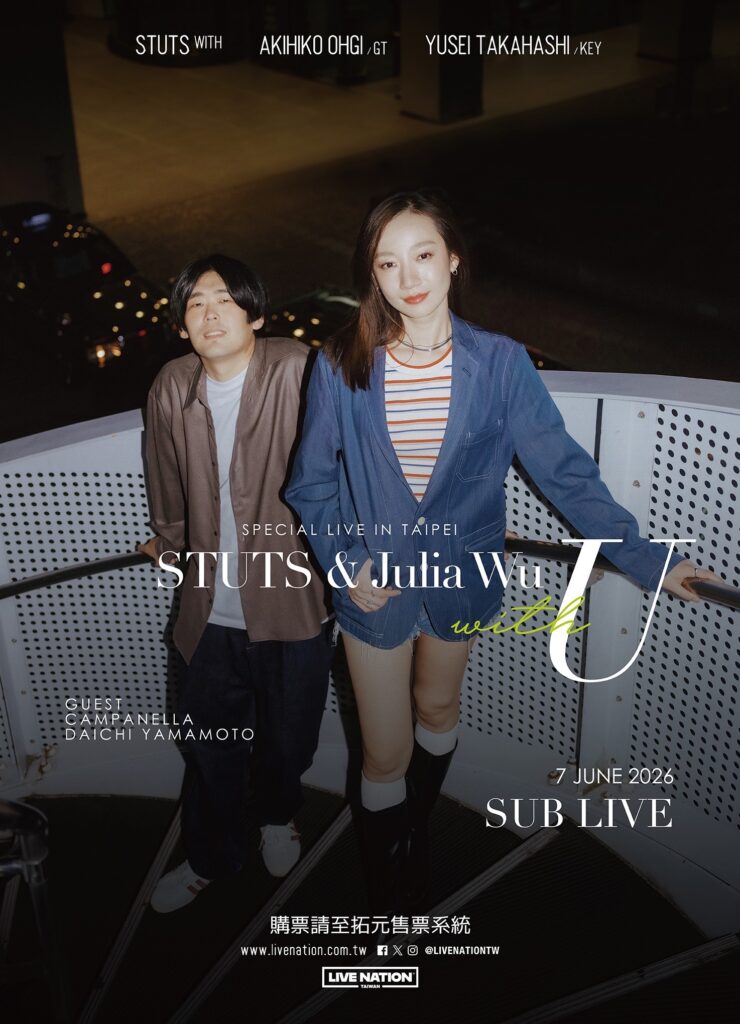 From Taipei to Tokyo — an international collaboration. ONE NIGHT ONLY! Renowned Japanese producer STUTS teams up with Julia Wu for the “With U” Special Live in Taipei. Tickets go on sale via tixcraft at 12 PM local time on Apr 20.